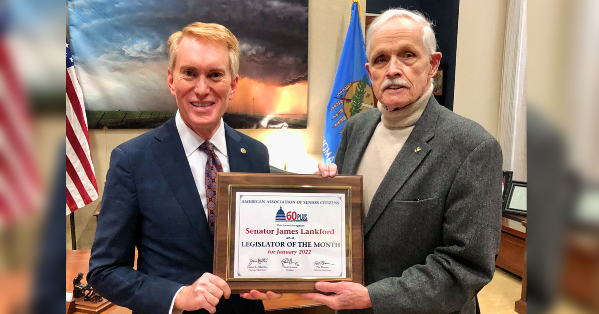 Oklahoma Senator James Lankford has earned a Lawmaker of the Month award from 60 Plus, the American Association of Senior Citizens. Presenting the award on Capitol Hill, 60 Plus Founder and Chairman … Read more