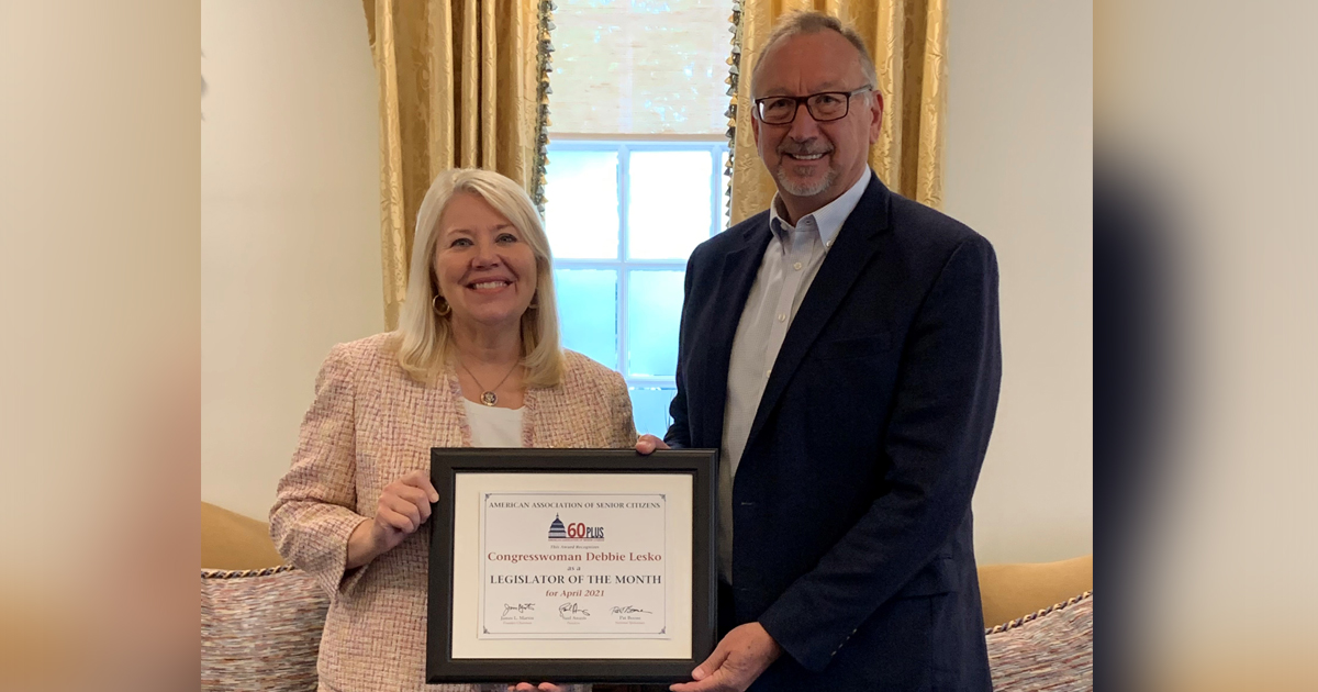 Congresswoman Debbie Lesko, Serving the Needs of Retirees Washington, DC (April 21, 2020) –60 Plus Association President Saul Anuzis presented Congresswoman Debbie Lesko (AZ-8) with the American Association of Senior Citizens Legislator … Read more