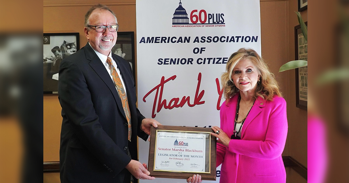 Tennessee Senator Marsha Blackburn has earned a Lawmaker of the Month award from 60 Plus, the American Association of Senior Citizens. Presenting the award on Capitol Hill, 60 Plus President Saul Anuzis … Read more